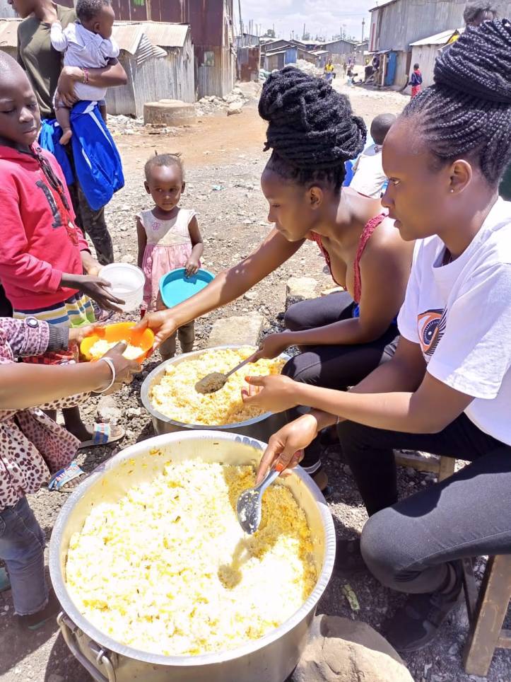 Rafiki deelt regelmatig pap uit aan kinderen in de sloppenwijk